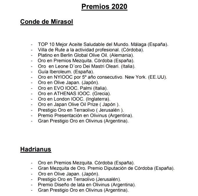 La empresa Conde de Mirasol, ubicada en Rute (Córdoba) y con su olivar hojiblanco en el Cortijo de El Tejar, es un extraordinario ejemplo de calidad y buen hacer en la elaboración de aceites de oliva virgen extra. Si su marca Conde de Mirasol sorprende por su delicadas fragancias aromáticas y frescas, a verde intenso, propias de la aceituna temprana, su HADRIANVS aporta la madurez de un AOVE único y se convierte en un gran ejemplo de que con aceitunas maduras es posible alcanzar también cuotas de alta calidad, equilibrio y complejidad, sin renunciar a cualidades organolépticas excepcionales. Alfonso Gordon, CEO de Conde de Mirasol, reflexiona sobre el origen de HADRIANVS, y sus principales características, que han logrado ya importantes premios nacionales e internacionales.