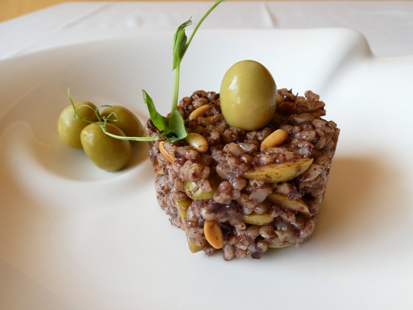 El cocinero murciano ha integrado en un plato elementos tan tradicionales y locales como los arroces de Calasparra, los encurtidos, los salazones mediterráneos y los pinos piñoneros. La base de un arroz listo para ser protagonizado por la intensa personalidad de las aceitunas Manzanilla. Unas Aceitunas de Autor que condensan toda la cocina del litoral para disfrutar del verano cualquier día.