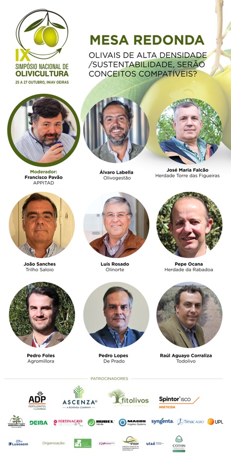 La mesa redonda, que se celebrará en la mañana del 26 de octubre, a las 9:30 am, estará moderada por Francisco Pavão, presidente de APPITAD y conocido especialista en aceite de oliva, y cuenta con los siguientes oradores: Álvaro Labella, Olivogestão; José Maria Falcão, Herdade Torre das Figueiras; João Sanches, Trilho Saloio; Luís Rosado, Olinorte; Pepe Ocaña, Herdade da Rabadoa; Pedro Lopes, De Prado;Pedro Foles, Agromillora y Raúl Aguayo Corraliza, Todolivo.