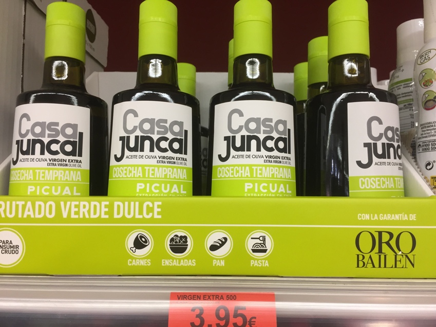 Bajo la marca “Casa Juncal”, se distribuye en más de 900 lineales de Mercadona con su variedad Picual, destacando en su etiqueta la leyenda Cosecha Temprana a un precio muy llamativo: 3,95 euros en envase de cristal de 500 ml. Lo hace desde la campaña 2018/2019, manteniendo el mismo precio original. Destacando en el packaging “con la garantía de Oro Bailén”, una de las marcas más premiadas a nivel nacional e internacional.