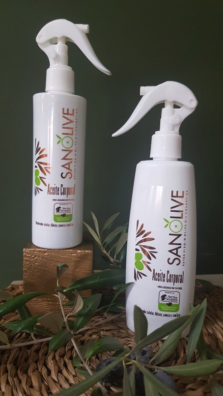 El aceite corporal Sanolive está elaborado y comercializado por la almazara y envasadora “Molino de Segura”, de La Puerta de Segura, y que además de AOVE cuenta con otros aceites como rosa mosqueta o uva. El producto es un auténtico oro líquido, formulado para proteger la piel frente al envejecimiento celular, rico en vitamina E, un excelente antioxidante natural, recomendado para aumentar la elasticidad de la piel y prevenir la flacidez.