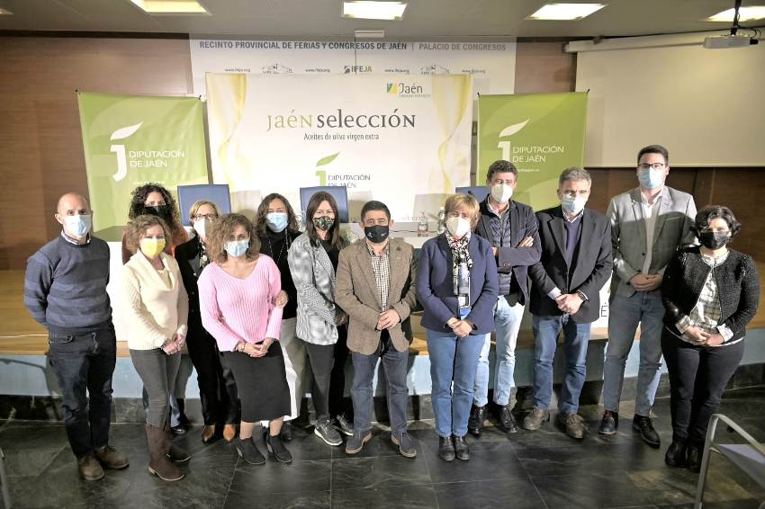 El presidente de la Diputación de Jaén, Francisco Reyes, ha sido el encargado de hacer públicos los 8 aceites de oliva virgen extra –siete convencionales y uno ecológico– que lucirán durante el año 2022 el distintivo Jaén Selección, un sello de calidad que concede la Administración provincial a los mejores AOVEs jiennenses de cada cosecha que este año han logrado 4 cooperativas y otras 4 almazaras.