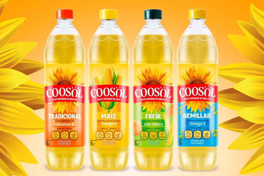 Coosol ha relanzado al mercado su gama de aceites de girasol y semillas, mejorando su imagen y cambiando su envase por una botella más sostenible. El nuevo diseño cuenta con una etiqueta de un mayor tamaño que permite ofrecer información de valor para el consumidor como las sugerencias de uso, los beneficios saludables o destacar el ingrediente principal de cada una de las variedades de la gama. Con estos cambios, Coosol se acerca al consumidor, al que impacta con información de forma más directa y se presenta con una imagen más moderna e innovadora en el lineal.
