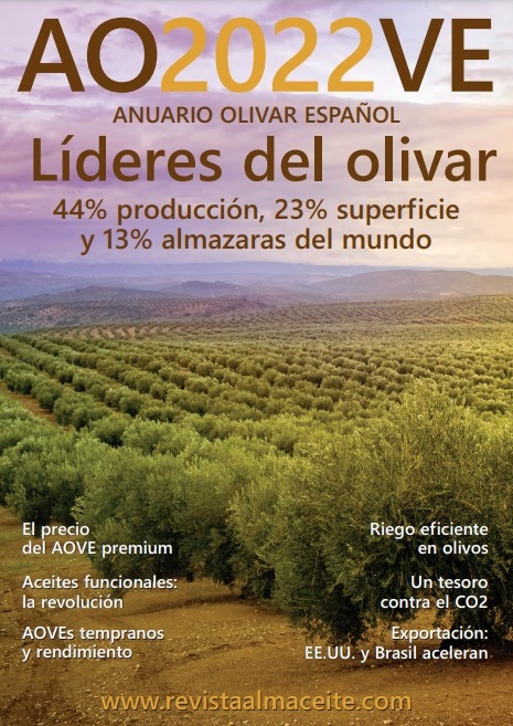 Líderes del olivar. Bajo este título que resume el liderazgo internacional del olivar español en el sector oleícola mundial -44% de la producción, 23% de la superficie y 13% de las almazaras- se acaba de publicar la nueva edición del ANUARIO AOVE-OLIVAR ESPAÑOL 2022 que edita www.revistaalmaceite. Ya en su sexta edición con casi 160 páginas de contenidos muy diferenciados y la presencia de destacadas empresas, cooperativas y expertos nacionales e internacionales del sector olivarero y oleícola.