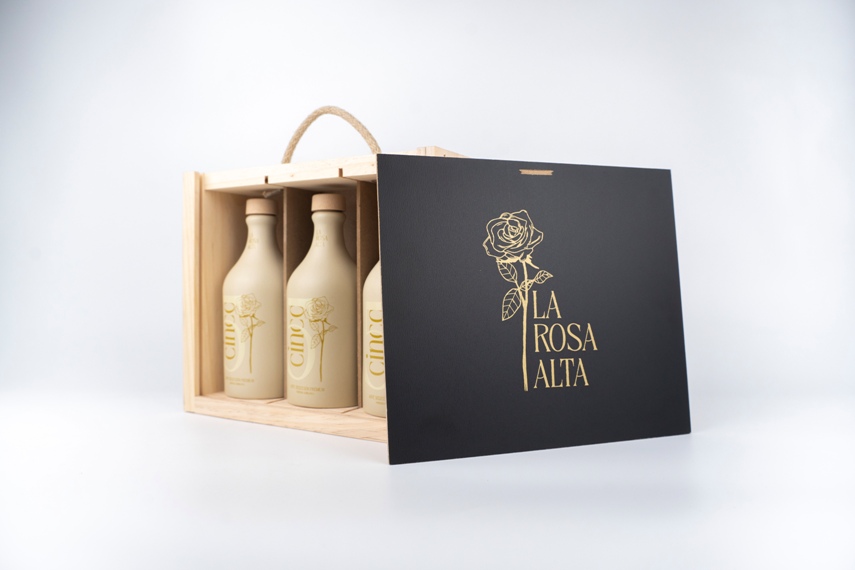Desde la Subbética cordobesa, cuna de excelentes AOVES reconocidos internacional, el proyecto oleícola de La Rosa Alta se muestra como una experiencia única que transporta con los sentidos a la esencia del Mediterráneo. Desde Rute, han logrado hacer llegar al mercado un AOVE de la variedad Hojiblanca que proviene de olivos centenarios propios con excepcionales características organolépticas. A través de su colección de botellas Cinco, en diferentes formatos, y también con un práctico envase en lata de tres litros, de cuidado diseño. Tradición, esfuerzo y pasión se entrelazan en esta apuesta familiar que lidera Sergio Pérez Roldán, fundador de La Rosa Alta, abierta tanto al mercado nacional de AOVEs Premium como al mercado internacional.