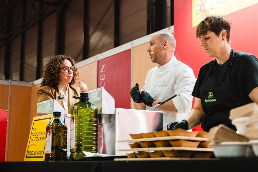 Uno de los momentos clave fue la comparativa práctica entre una croqueta frita con AOVE especialmente desarrollado para gastronomía por Almazaras de la Subbética y un aceite alto oleico. La degustación posterior de las croquetas “permitió a los asistentes apreciar las diferencias en textura, sabor y comportamiento en fritura”, según manifestó la Responsable Comercial de la Zona Centro, norte e islas de Almazaras de la Subbética, Lucía Matas.