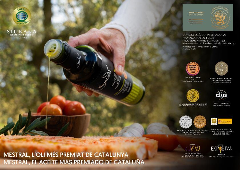 El aceite Mestral DOP Siurana de la Cooperativa Agrícola de Cambrils suma a su extensa lista de premios el primer puesto en el concurso internacional de mayor prestigio en el mundo oleícola, el Premio Internacional Mario Solinas, reafirmándose como el aceite de oliva virgen extra catalán más premiado.
